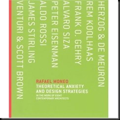 Les presento a la nueva joya de mi biblioteca: "Theorical Anxiety and Design Strategies", escrita por el arquitecto español Rafael Moneo, ganador del Premio Prizker de 1996. En este libro, Moneo analiza -con la calma que lo caracteriza- la obras de aquellos arquitectos que han sobresalido en los últimos 20 años. Si bien no es un libro que pretenda hacernos cambiar de opinión sobre estos polémicos persosnajes y sus obras (y no tiene por qué pretenderlo) logra explicar muy bien la razón y la circunstancia que motivó la transformación de personas como Robert Venturi, Frank Ghery o Rem Koolhaas en vacas sagradas de la arquitectura actual.
