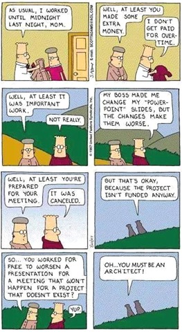 Pero -en mi caso particular- antes que político, soy arquitecto, en todas sus escalas. Y soy arquitecto antes que político porque he podido descubrir que la verdadera arquitectura (y dentro de ese termino incluyo también al verdadero urbanismo. Entre arquitectura y urbanismo no hay diferencias conceptuales, sino de significado) se busca siempre el bien común de todas las partes involucradas. La política -en cambio- tiende por su propia naturaleza a no buscar el bien común. Por el contrario, sólo busca el bien de un grupo, de un equipo, de "los nuestros". Y eso se da en el mejor de los casos, cuando la política ha alcanzado un nivel óptimo de madurez. Cuando dicha madurez aún no es alcanzada, se opta por ver antes "el mal de los otros", antes que el "bien para los nuestros".